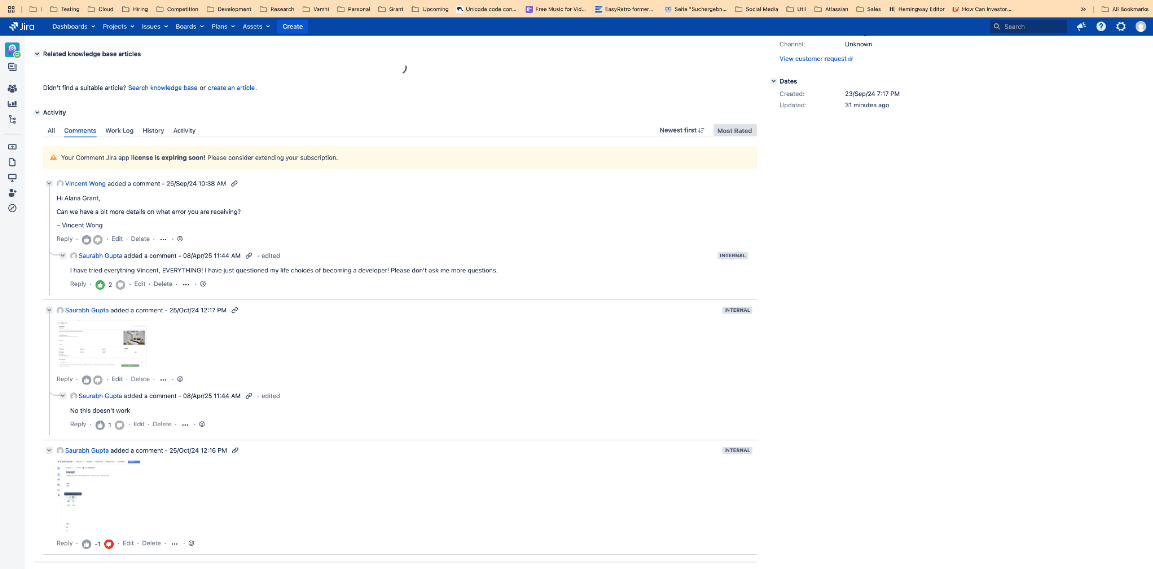 Users can like, dislike and sort comments based on popularity to surface the most helpful insights. Important comments can be saved for later and viewed from a dedicated screen, making it easier to keep track of key decisions and context across long-running issues.