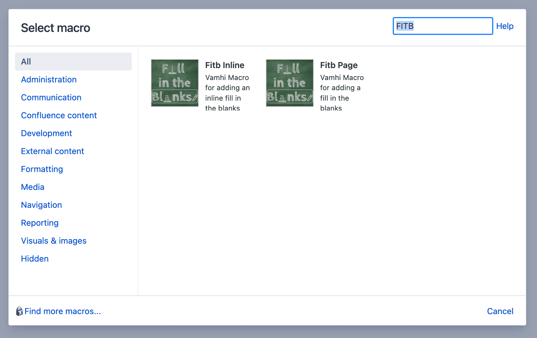 Enter the details required in the parameter and insert the “Fitb Inline” macro in your respective place in confluence page.